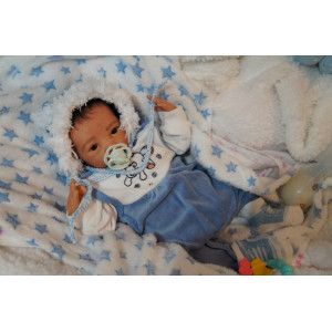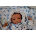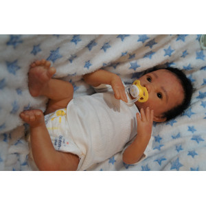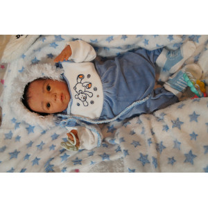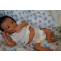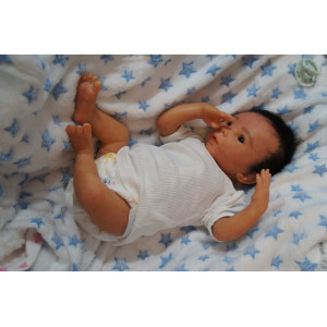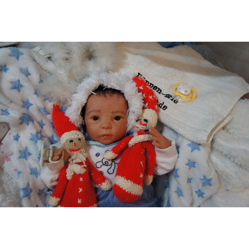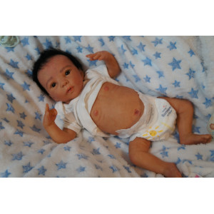 Ich wurde mit hochwertigen Farben in Real Effekt Technik eingefärbt. Mit Genesis Farben habe ich dieses alles noch mal zum Schluss gut versiegelt und eingebrannt. Diese wurde in mehreren Schichten aufgetragen, sodass ein sehr realistisches Hautbild entstanden ist. (Wisch- und Wasserfest kein Abblättern mgl). Feinste Schattierungen und leichte Betonung der Speckfalten wurden bei mir auch nicht vergessen. Leichte Äderchen an Händen, Armen, Füßchen, Beinen, Ohren, Kopf und Gesicht lassen mich wie ein echtes Baby aussehen. Jedes Fältchen an mir wurde einzeln betont. Zarte Augenbrauen wurden mir auch gegeben. Meine Nase wurde geöffnet und hinterlegt, sodass ich jetzt auch gut Luft bekomme. Auch zarte Befeuchtung der Augen, Mund und Nase lassen mich noch echter wirken.