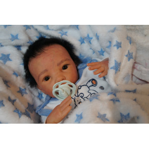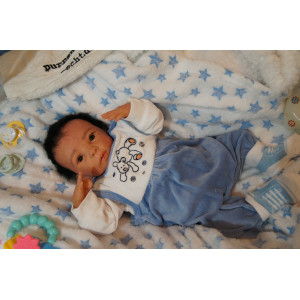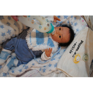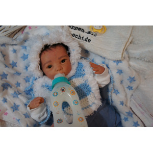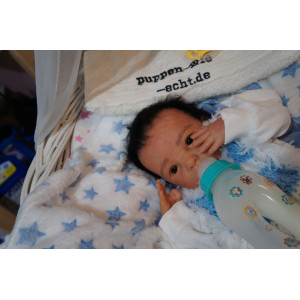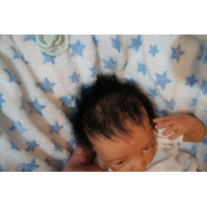 Meine Haare sind schwarz und im micro Rooting Verfahren einzeln eingepflanzt (Feinstes Mohair ). Anschließend natürlich von innen versiegelt. Und nun kann man meine Haare kämmen und auch mal leicht waschen. Die passenden Wimpern habe ich auch dazu gerootet bekommen, das sieht jetzt richtig echt aus. Meine Finger- und Fußnägel wurden fein Pedi- und Manikürt und anschließend dauerhaft versiegelt. Zum Schluss bekam ich noch einen Magnetschnuller. Und ein Duftöl aufgetragen, jetzt riech ich auch noch wie ein echtes Baby.