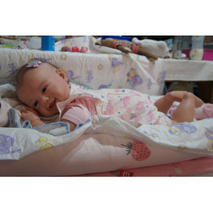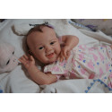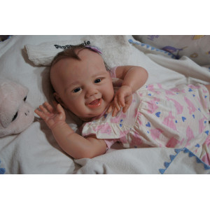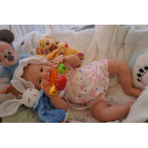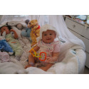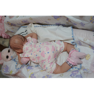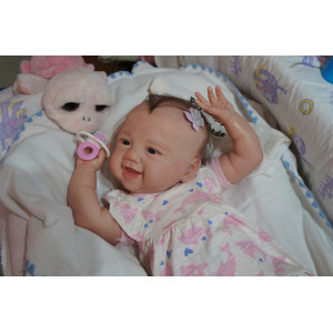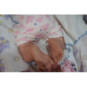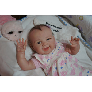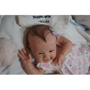 Ich wurde mit hochwertigen Farben in Real Effekt Technik eingefärbt. Mit Genesis Farben habe ich dieses alles noch mal zum Schluss gut versiegelt und eingebrannt. Diese wurde in mehreren Schichten aufgetragen, sodass ein sehr realistisches Hautbild entstanden ist. (Wisch- und Wasserfest kein Abblättern mgl). Feinste Schattierungen und leichte Betonung der Speckfalten wurden bei mir auch nicht vergessen. Leichte Äderchen an Händen, Armen, Füßchen, Beinen, Ohren, Kopf und Gesicht lassen mich wie ein echtes Baby aussehen. Jedes Fältchen an mir wurde einzeln betont. Zarte Augenbrauen wurden mir auch gegeben. Meine Nase wurde geöffnet und hinterlegt, sodass ich jetzt auch gut Luft bekomme. Auch zarte Befeuchtung der Augen, Mund und Nase lassen mich noch echter wirken.