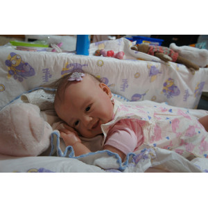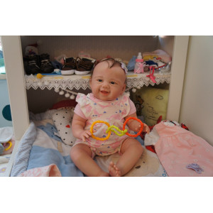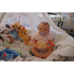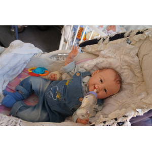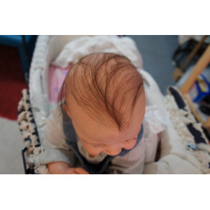 Meine Haare sind dunkelbraun und im micro Rooting Verfahren einzeln eingepflanzt (Feinstes Mohair ). Anschließend natürlich von innen versiegelt. Und nun kann man meine Haare kämmen und auch mal leicht waschen. Die passenden Wimpern habe ich auch dazu gerootet bekommen, das sieht jetzt richtig echt aus. Meine Finger- und Fußnägel wurden fein Pedi- und Manikürt und anschließend dauerhaft versiegelt. Zum Schluss bekam ich noch einen Magnetschnuller. Und ein Duftöl aufgetragen, jetzt riech ich auch noch wie ein echtes Baby.