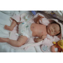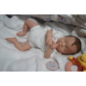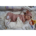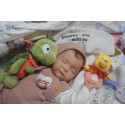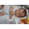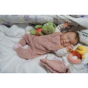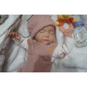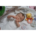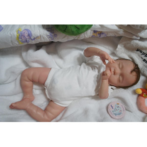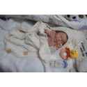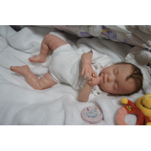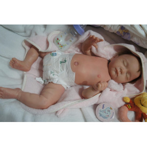 Ich wurde mit hochwertigen Farben in Real Effekt Technik eingefärbt. Mit Genesis Farben habe ich dieses alles noch mal zum Schluss gut versiegelt und eingebrannt. Diese wurde in mehreren Schichten aufgetragen, sodass ein sehr realistisches Hautbild entstanden ist. (Wisch- und Wasserfest kein Abblättern mgl). Feinste Schattierungen und leichte Betonung der Speckfalten wurden bei mir auch nicht vergessen. Leichte Äderchen an Händen, Armen, Füßchen, Beinen, Ohren, Kopf und Gesicht lassen mich wie ein echtes Baby aussehen. Jedes Fältchen an mir wurde einzeln betont. Zarte Augenbrauen wurden mir auch gegeben. Meine Nase wurde geöffnet und hinterlegt, sodass ich jetzt auch gut Luft bekomme. Auch zarte Befeuchtung der Augen, Mund und Nase lassen mich noch echter wirken.