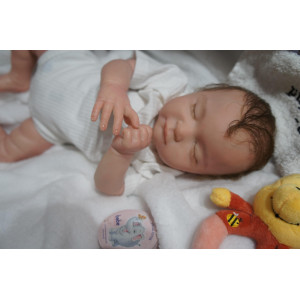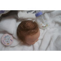 Meine Haare sind mittelbraun und im micro Rooting Verfahren einzeln eingepflanzt (Feinstes Mohair ). Anschließend natürlich von innen versiegelt. Und nun kann man meine Haare kämmen und auch mal leicht waschen. Die passenden Wimpern habe ich auch dazu gerootet bekommen, das sieht jetzt richtig echt aus. Meine Finger- und Fußnägel wurden fein Pedi- und Manikürt und anschließend dauerhaft versiegelt. Zum Schluss bekam ich noch einen Magnetschnuller. Und ein Duftöl aufgetragen, jetzt riech ich auch noch wie ein echtes Baby.