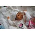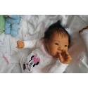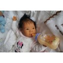 Meine Haare sind schwarz und im micro Rooting Verfahren einzeln eingepflanzt (Feinstes Mohair ). Anschließend natürlich von innen versiegelt. Und nun kann man meine Haare kämmen und auch mal leicht waschen. Die passenden Wimpern habe ich auch dazu gerootet bekommen, das sieht jetzt richtig echt aus. Meine Finger- und Fußnägel wurden fein Pedi- und Manikürt und anschließend dauerhaft versiegelt. Zum Schluss bekam ich noch einen Magnetschnuller. Und ein Duftöl aufgetragen, jetzt riech ich auch noch wie ein echtes Baby.