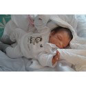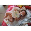 Meine Haare sind dunkelbraun und im micro Rooting Verfahren einzeln eingepflanzt (Feinstes Mohair ). Anschließend natürlich von innen versiegelt. Und nun kann man meine Haare kämmen und auch mal leicht waschen. Die passenden Wimpern habe ich auch dazu gerootet bekommen, das sieht jetzt richtig echt aus. Meine Finger- und Fußnägel wurden fein Pedi- und Manikürt und anschließend dauerhaft versiegelt. Zum Schluss bekam ich noch einen Magnetschnuller. Und ein Duftöl aufgetragen, jetzt riech ich auch noch wie ein echtes Baby.