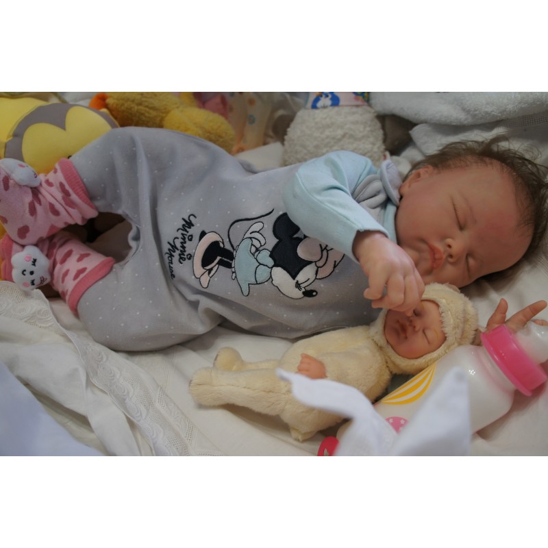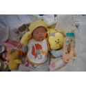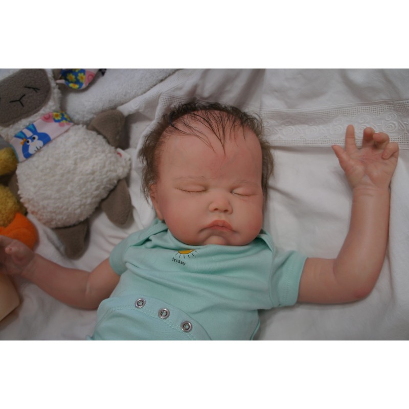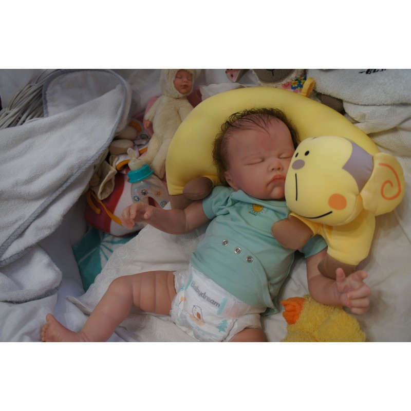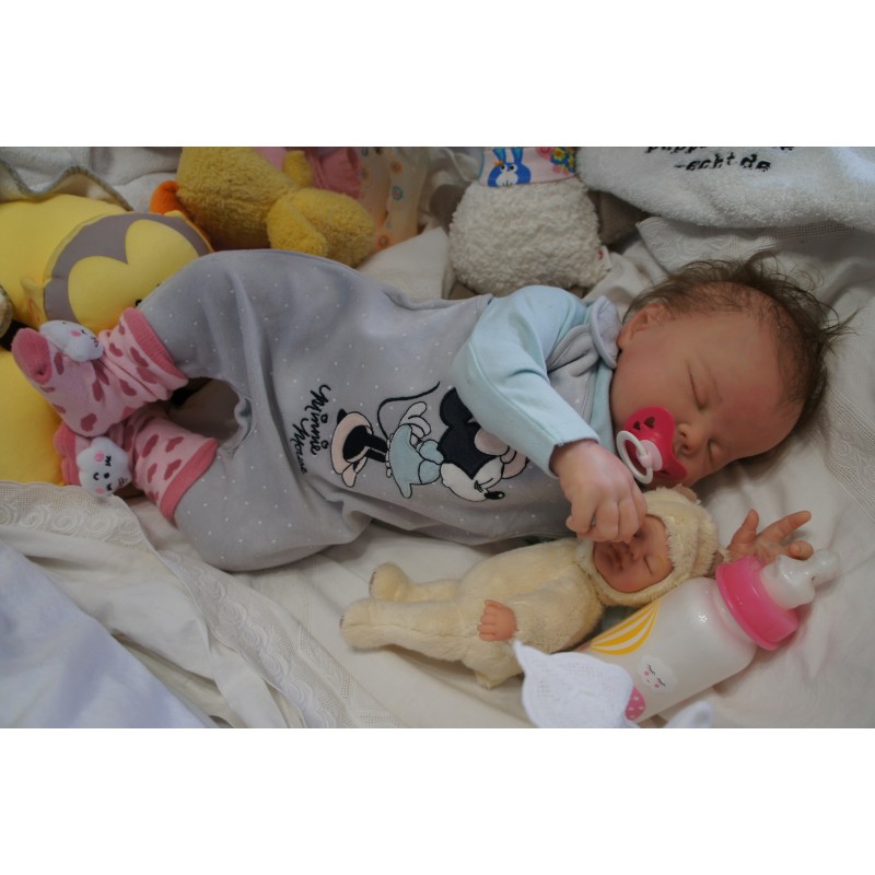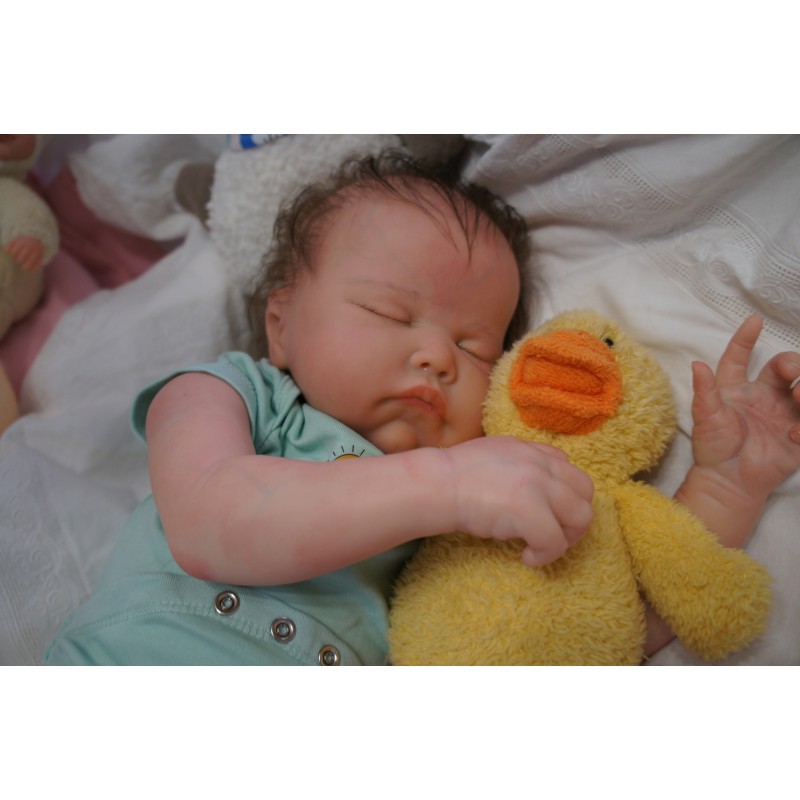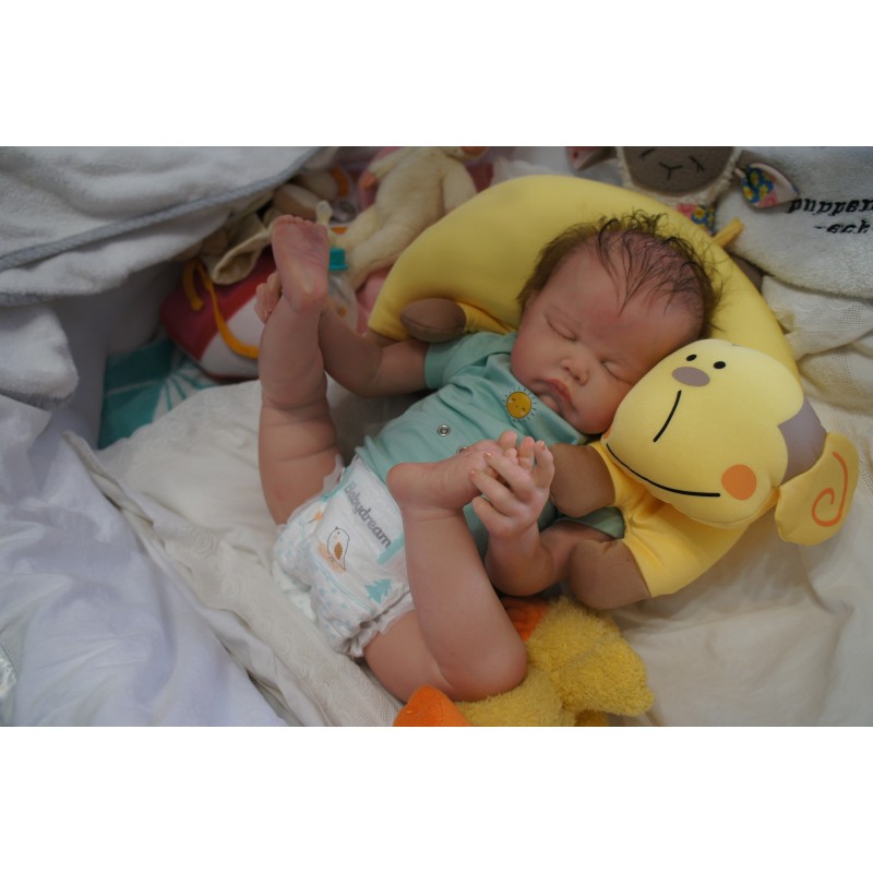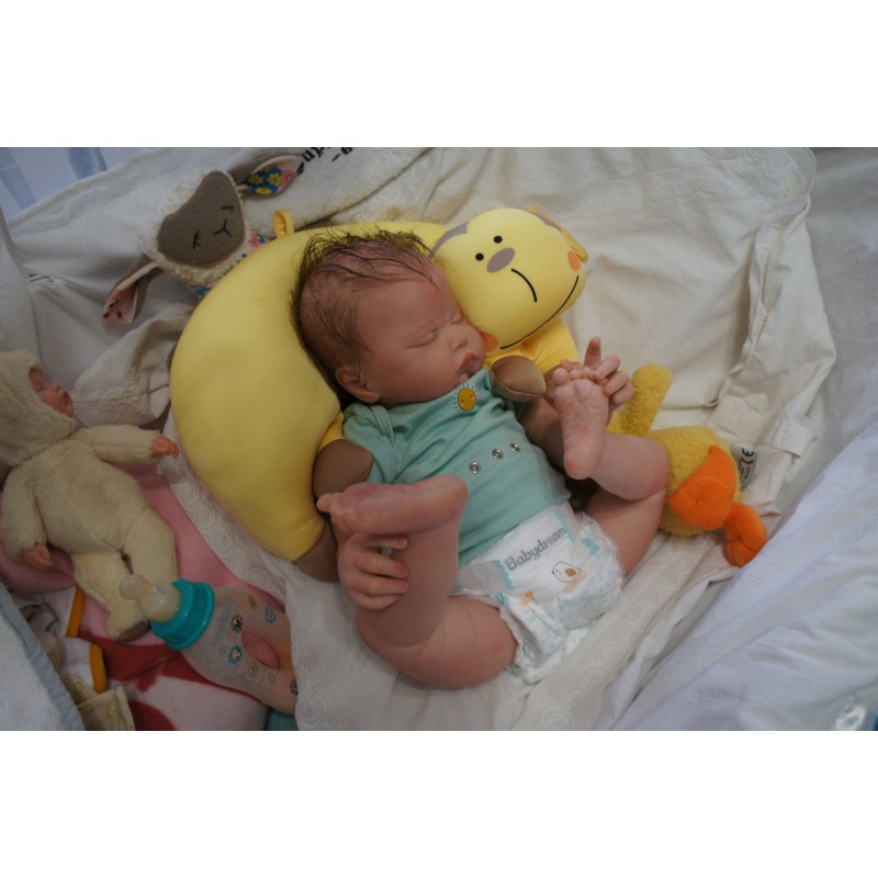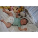Meine Haare sind Mocha und im micro Rooting Verfahren einzeln eingepflanzt (Feinstes BabyfluffMohair ). Anschließend natürlich von innen versiegelt. Und nun kann man meine Haare kämmen und auch mal leicht waschen. Die passenden Wimpern habe ich auch dazu gerootet bekommen, das sieht jetzt richtig echt aus. Meine Finger- und Fußnägel wurden fein Pedi- und Manikürt und anschließend dauerhaft versiegelt. Zum Schluss bekam ich noch einen Magnetschnuller. Und ein Duftöl aufgetragen, jetzt riech ich auch noch wie ein echtes Baby.