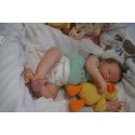 Ich habe weiche lange Arme und Beine und einen weichen Scheibengelenkkörper. So kann ich jetzt jede Babyposition einnehmen und mich gut an Dich herankuscheln. Außerdem kann ich im Sommer kurze Kleidung tragen. Die Arme und Beine sind realistisch gefüllt und mein Körper und Köpfchen wurden mit ungiftigen Materialien gewichtet. Meine Beine und Arme lassen sich dank den gelenken im Körper perfekt bewegen.